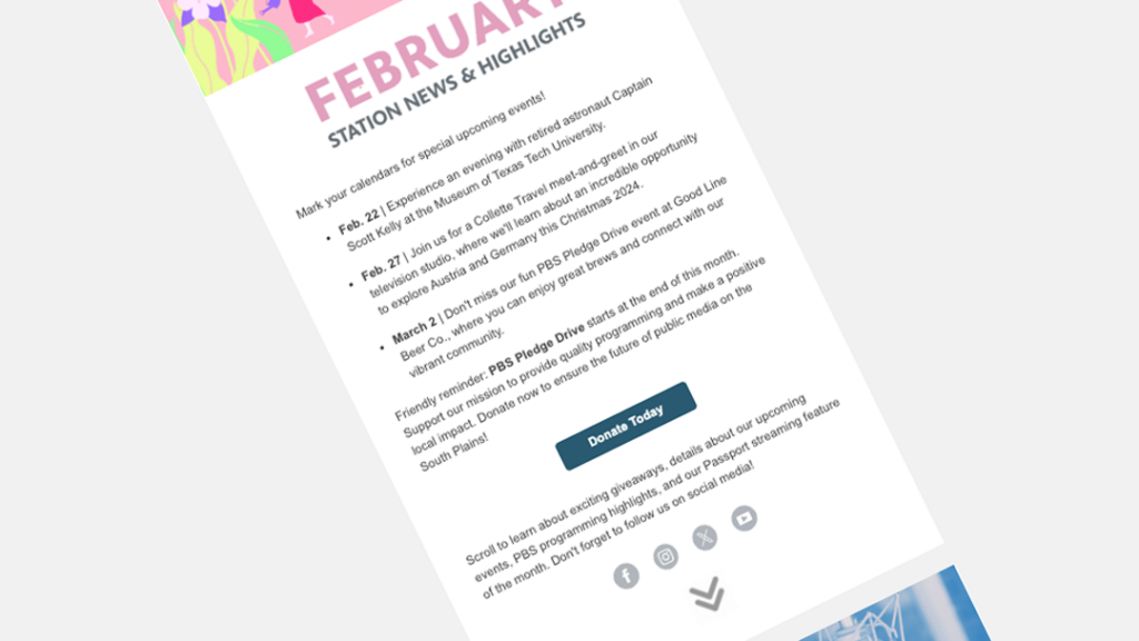 I create impactful email marketing campaigns. This email promoted a fundraiser that Texas Tech Public Media hosted at a local brewery as part of an NPR Fund Drive campaign.